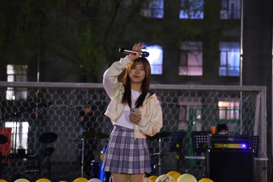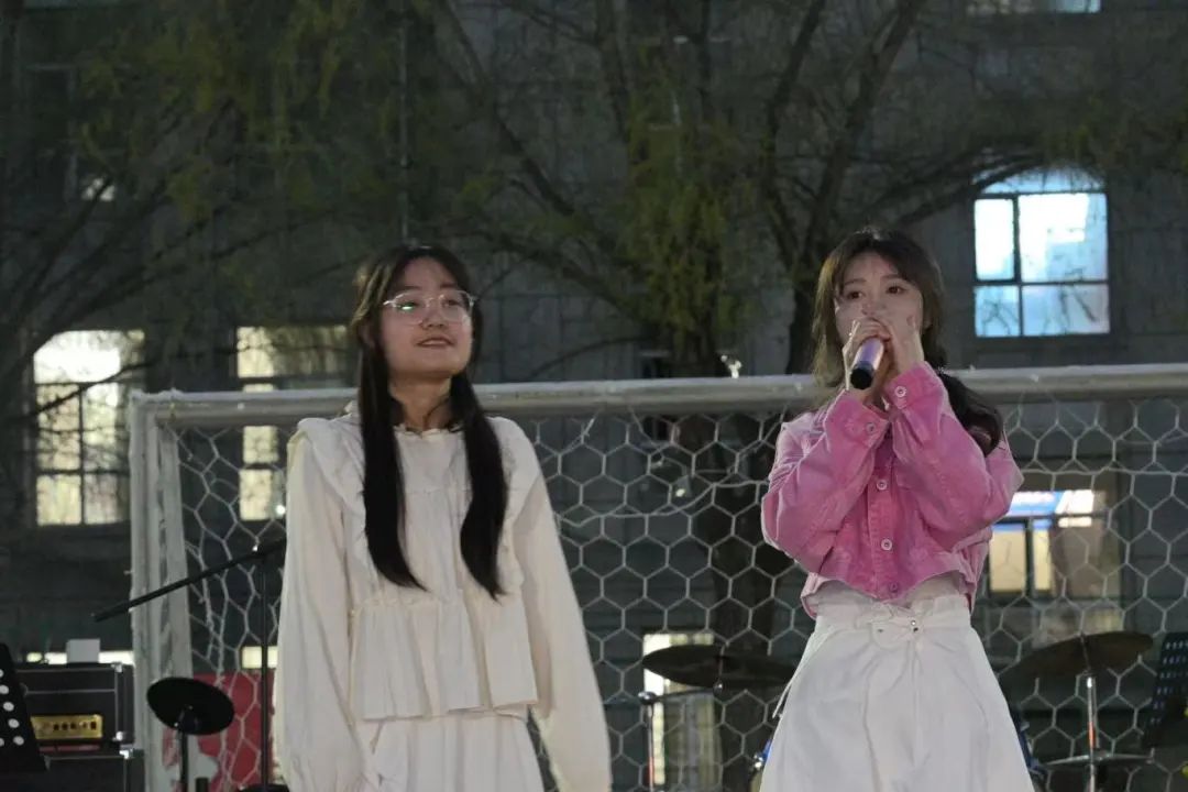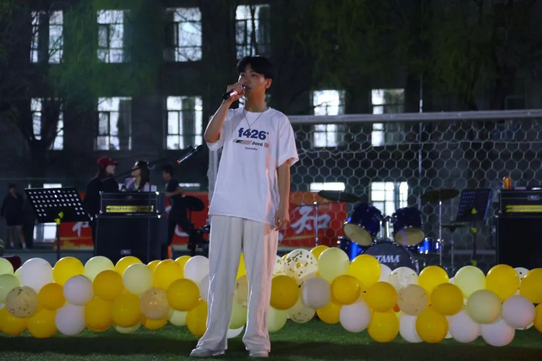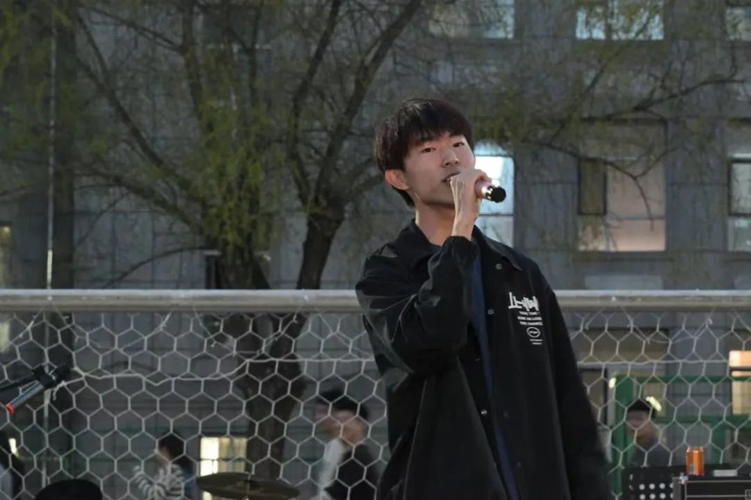 夕阳渐落,为音乐会添加了氛围感。春天的气息扑面而来,百名学生集聚在舞台前,伴随着音乐会的开展发出阵阵欢呼。首先由“献石油”乐队带来了精彩绝伦的表演,点燃整个操场的热情,调动起每个人的情绪!