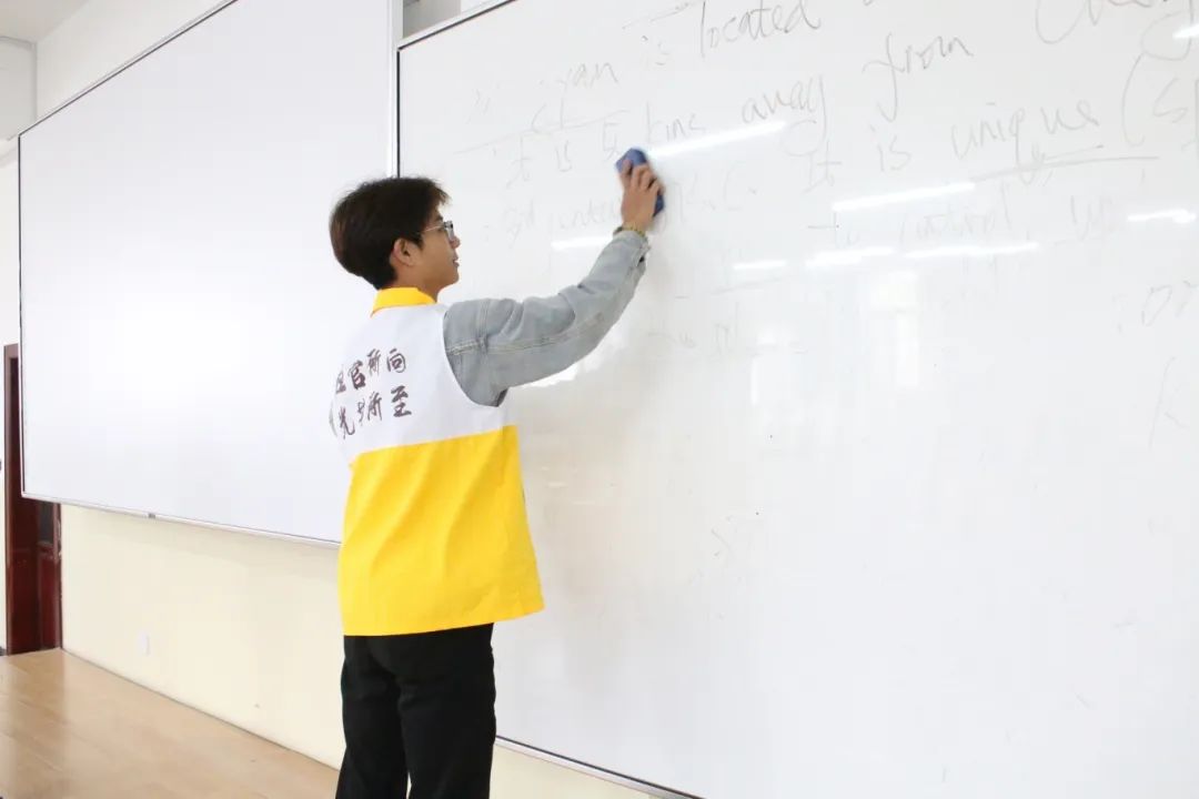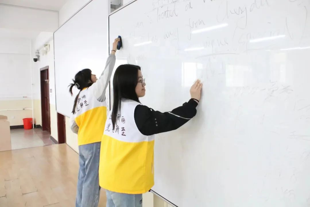 通过大家的辛勤努力,教室变得干净整洁,不仅为同学们创造了舒适的学习环境,也让志愿者们在劳动中深刻体会到了团结协作的精神。