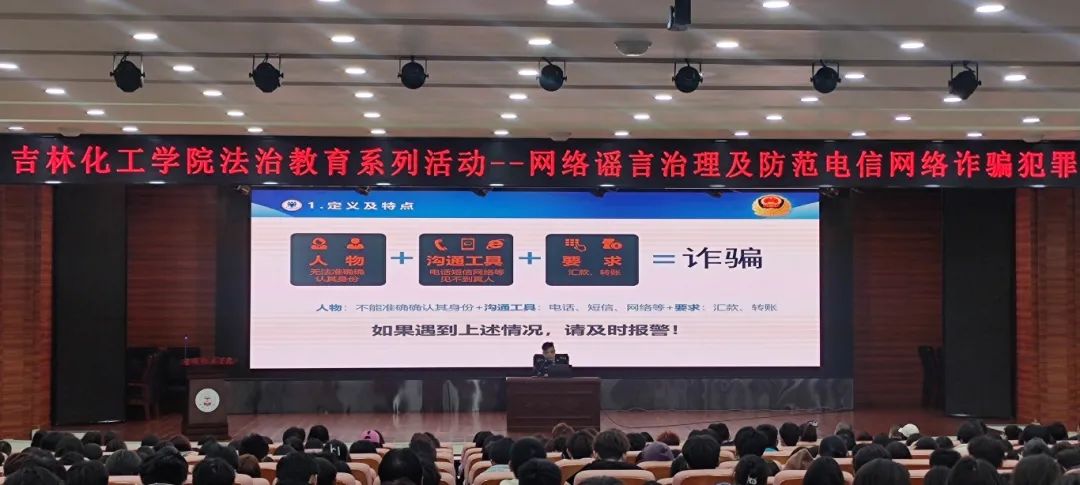 随后,来自反诈骗部门的丁警官围绕电信诈骗进行了深入剖析。丁警官指出,电信诈骗手段层出不穷,大学生作为网络使用的主力军,更需提高警惕,防范诈骗。他通过真实案例,生动形象地向同学们揭示了电信诈骗的危害性,并传授了识别、防范电信诈骗的技巧。