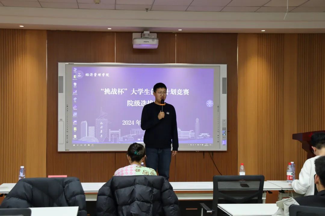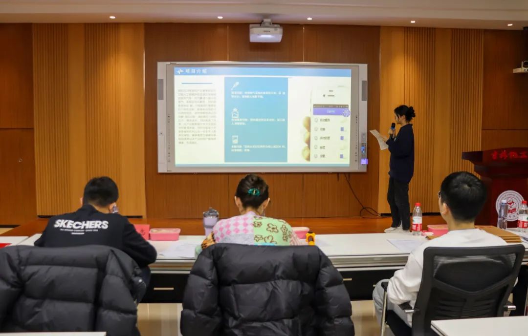 共有十四支队伍参加本次院级选拔赛,比赛期间每个参赛团队都怀揣梦想,积极展现自己的创业计划。用精心准备的PPT和生动的演讲,向评委和观众展示了自己的创业理念和计划。在场观摩团同学们仔细聆听,给予着参赛团队一定的精神支持和鼓励。